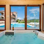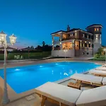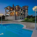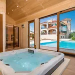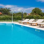Diese Villa bietet einen Patio und einen Balkon zusammen mit einem Bügeleisen/Bügelbrett und einer Klimaanlage für zusätzlichen Komfort der Gäste. Neben einem Kamin und schallisolierten Fenstern stehen Gästen zahlreiche Medieneinrichtungen zur Verfügung, darunter Satelliten-TV. Die Unterkunft in Drniš verfügt über ein Bidet, einen Whirlpool und eine getrennte Toilette sowie über Annehmlichkeiten wie einen Haartrockner und Badelaken.